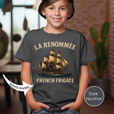 $15.99Vintage French frigate La Renommee art t-shirt for nautical and history lovers. Premium quality tee featuring detailed ship illustration with custom name personalization option. -