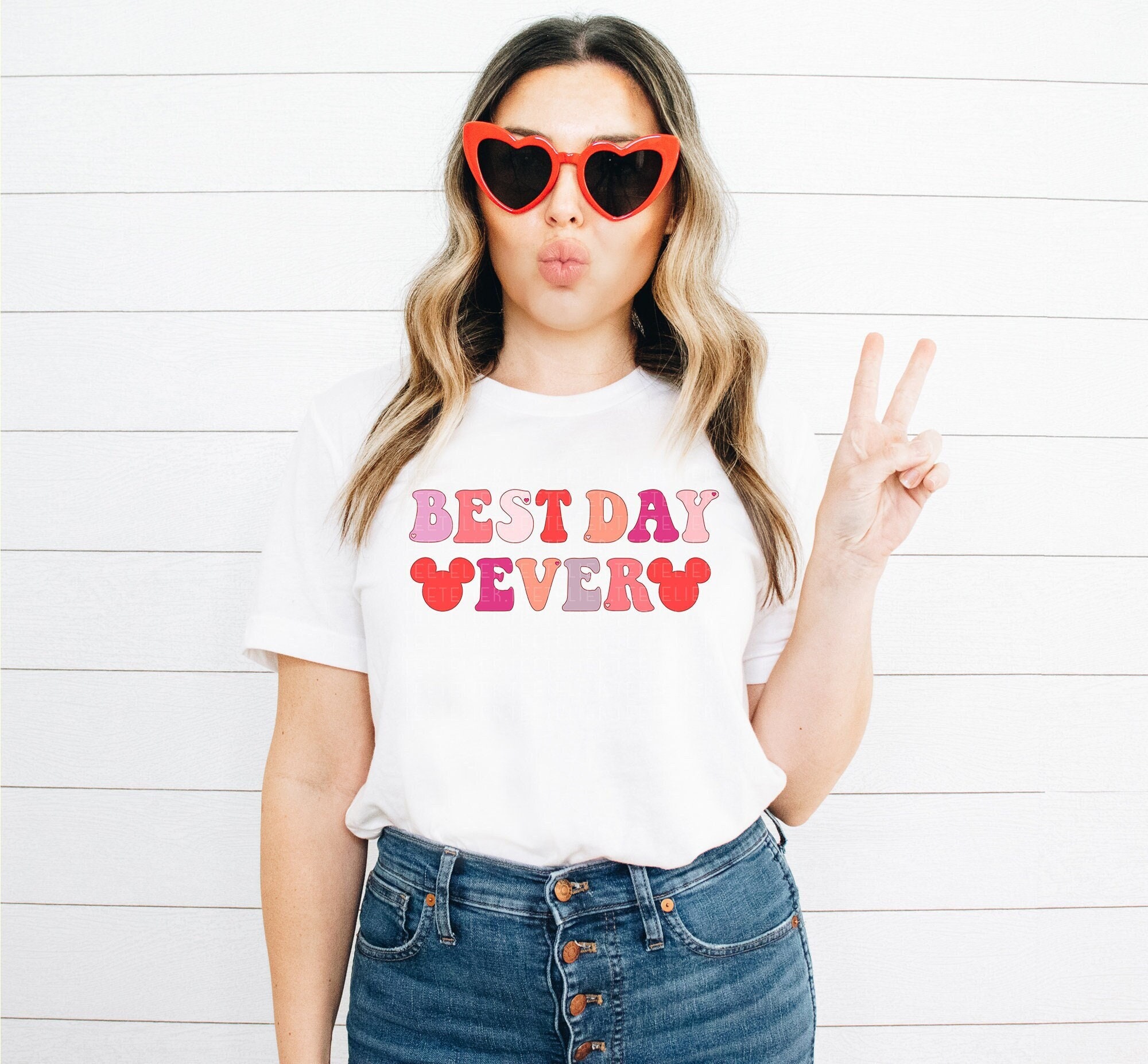 This versatile tee is ideal for: Valentine’s Day celebrations 🎉, family vacations to theme parks ✈️, matching family photo shoots 📸, Disney park visits 🏰, holiday gift-giving 🎁, birthday surprises 🎂, or simply spreading daily joy! Whether you’re creating magical memories or just adding fun to your wardrobe, this shirt turns ordinary days into “Best Day Ever” moments!