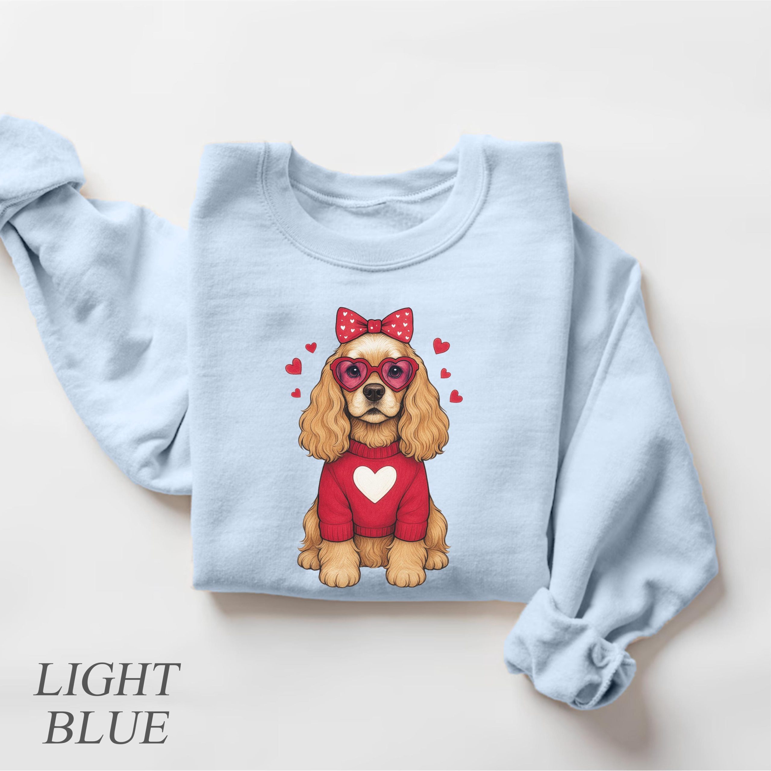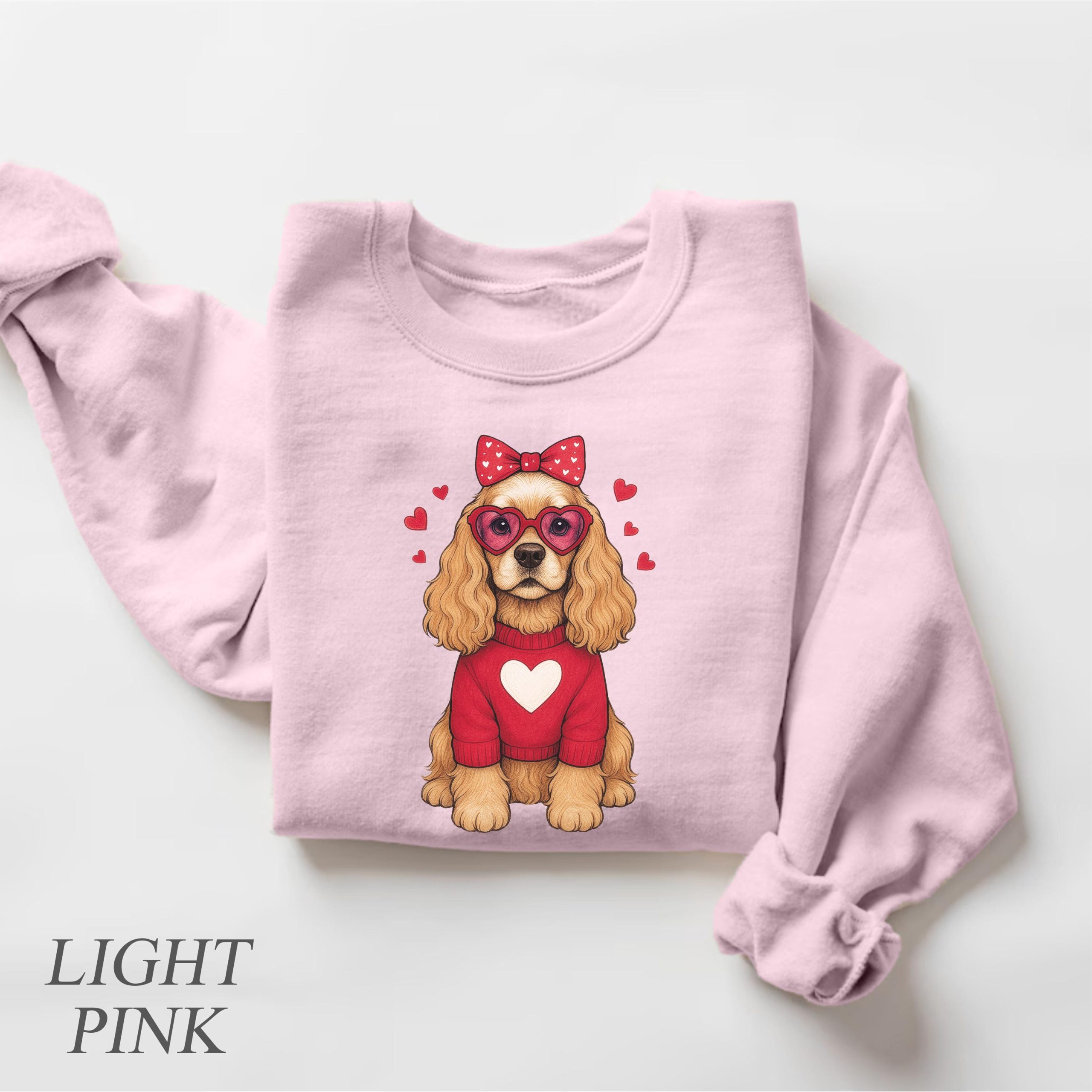 • Adorable Cocker Spaniel Illustration: Features a sweet, detailed Cocker Spaniel design with Valentine’s Day elements