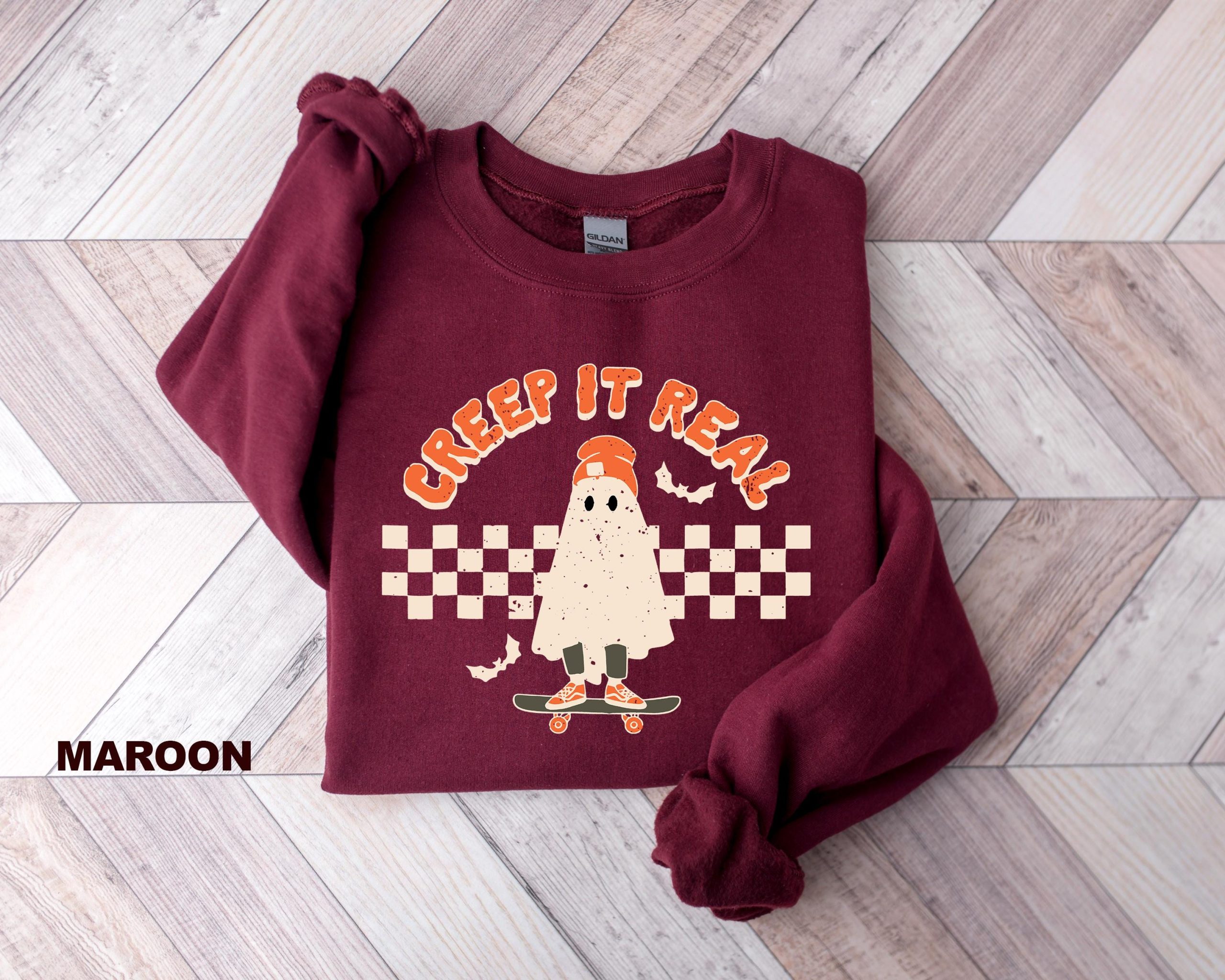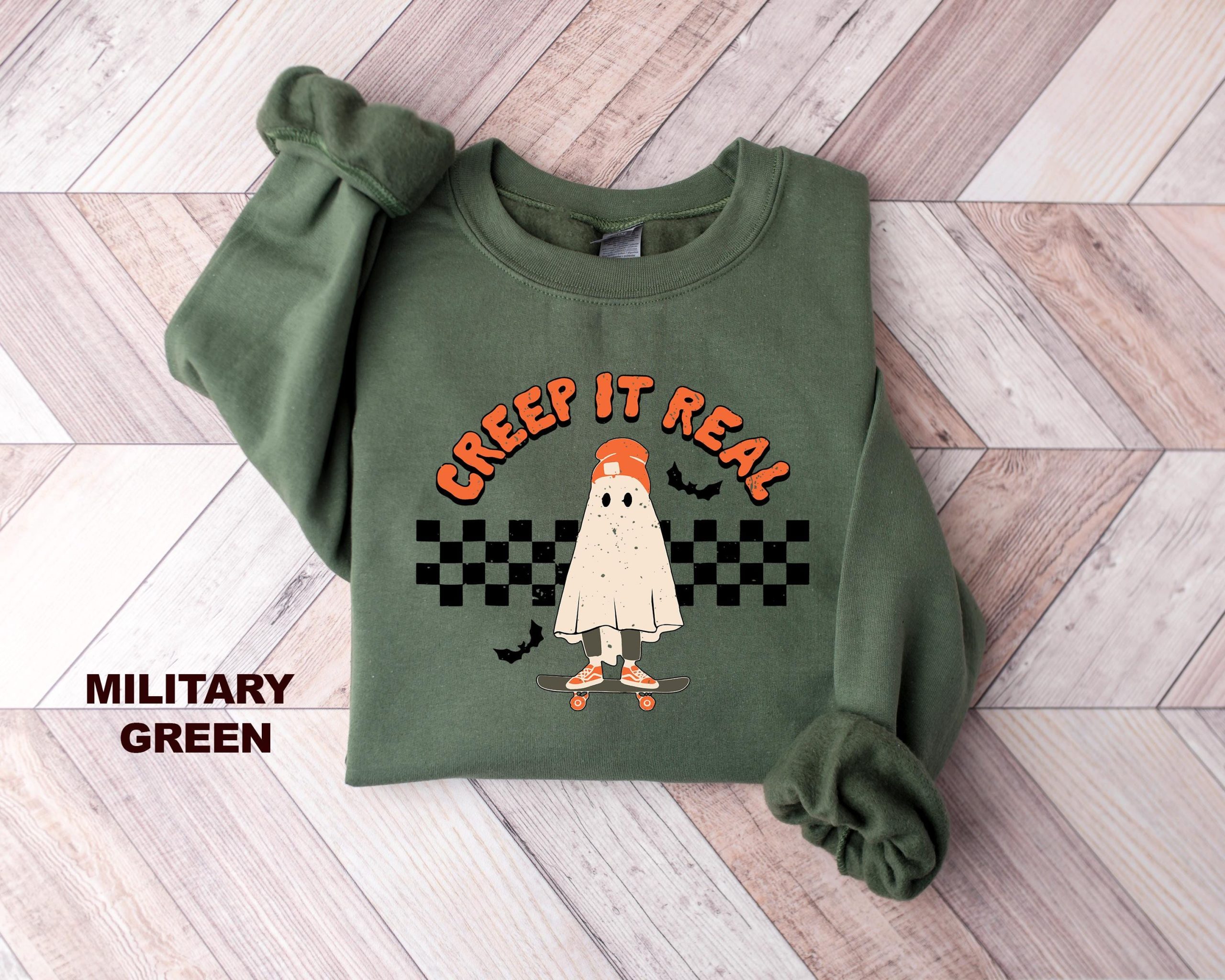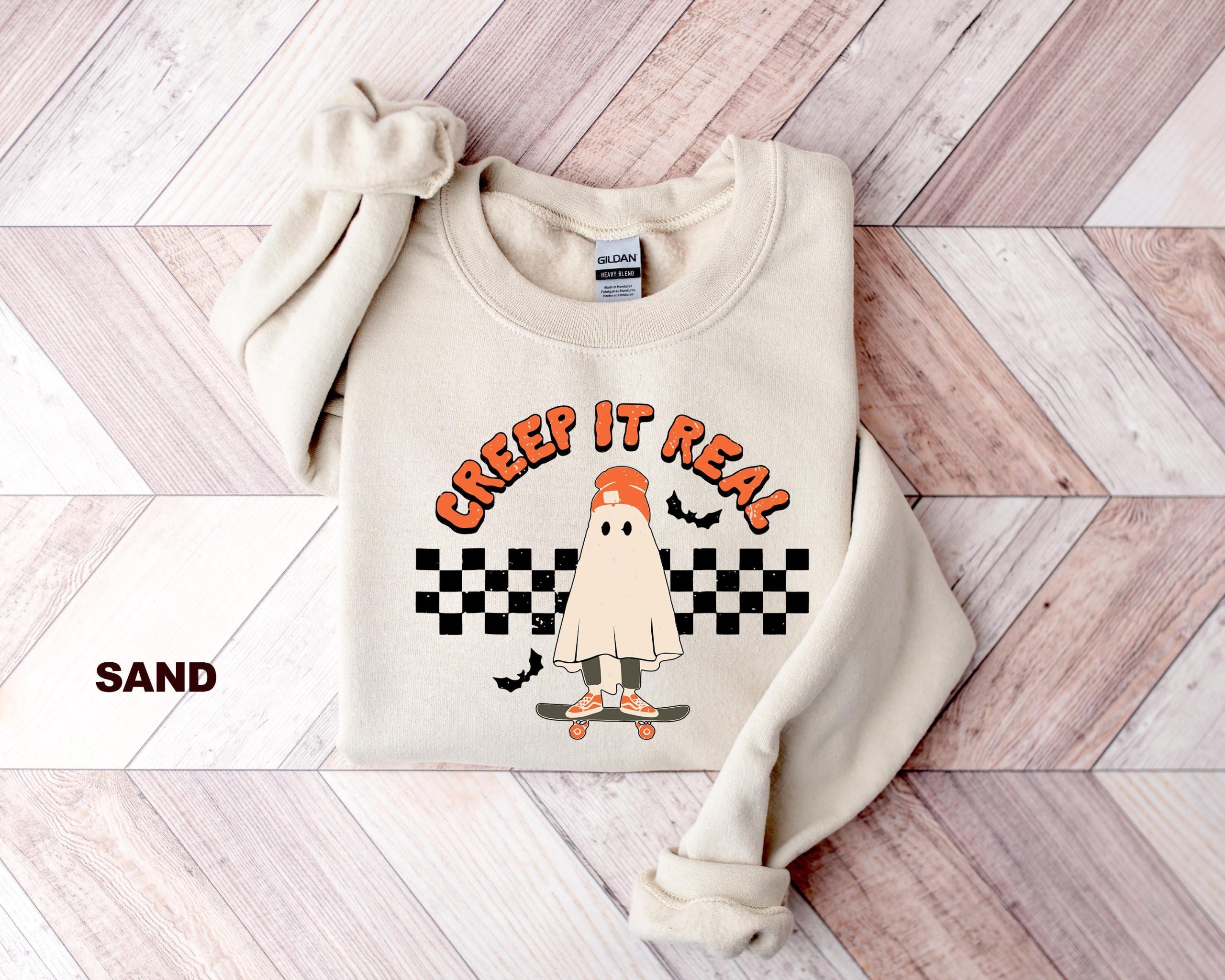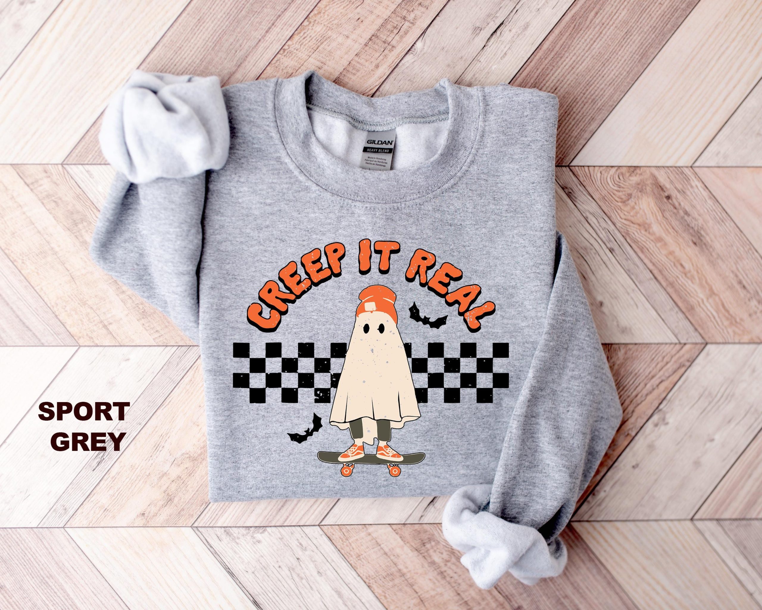 Embrace the spooky season in style with this charming Creep It Real ghost sweatshirt! 👕✨