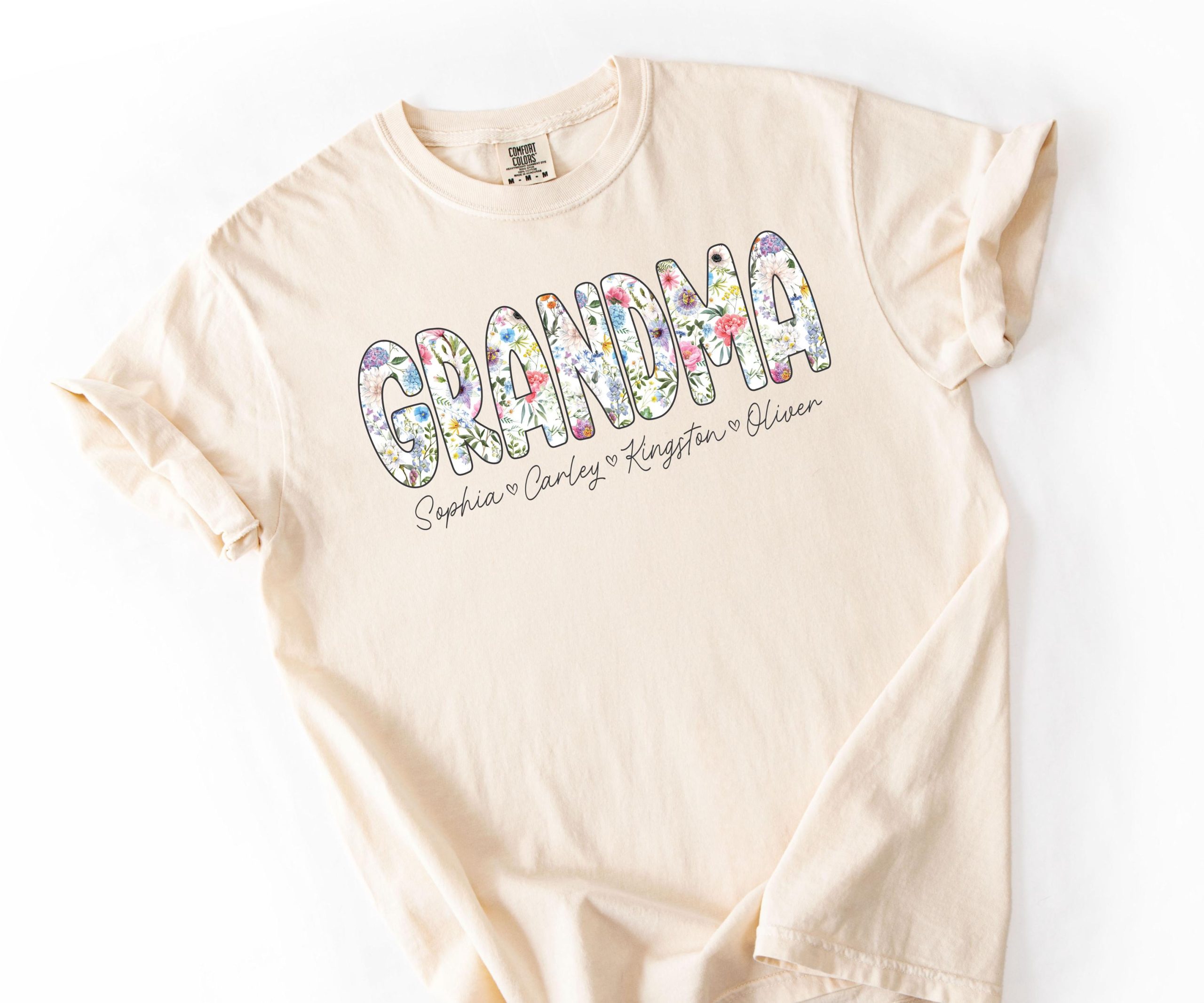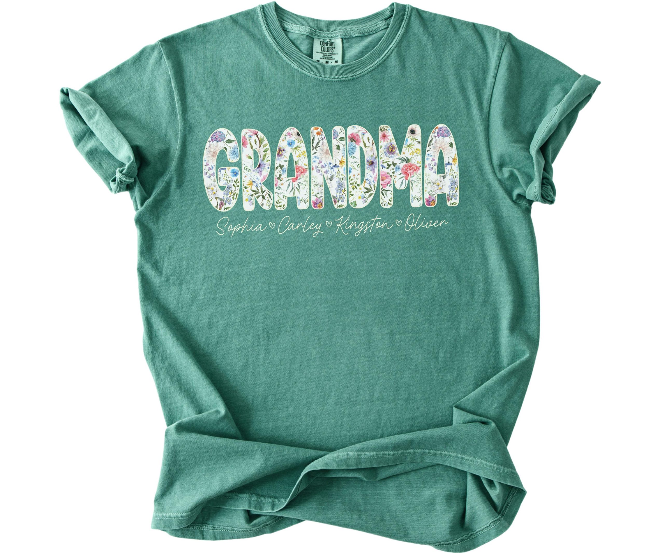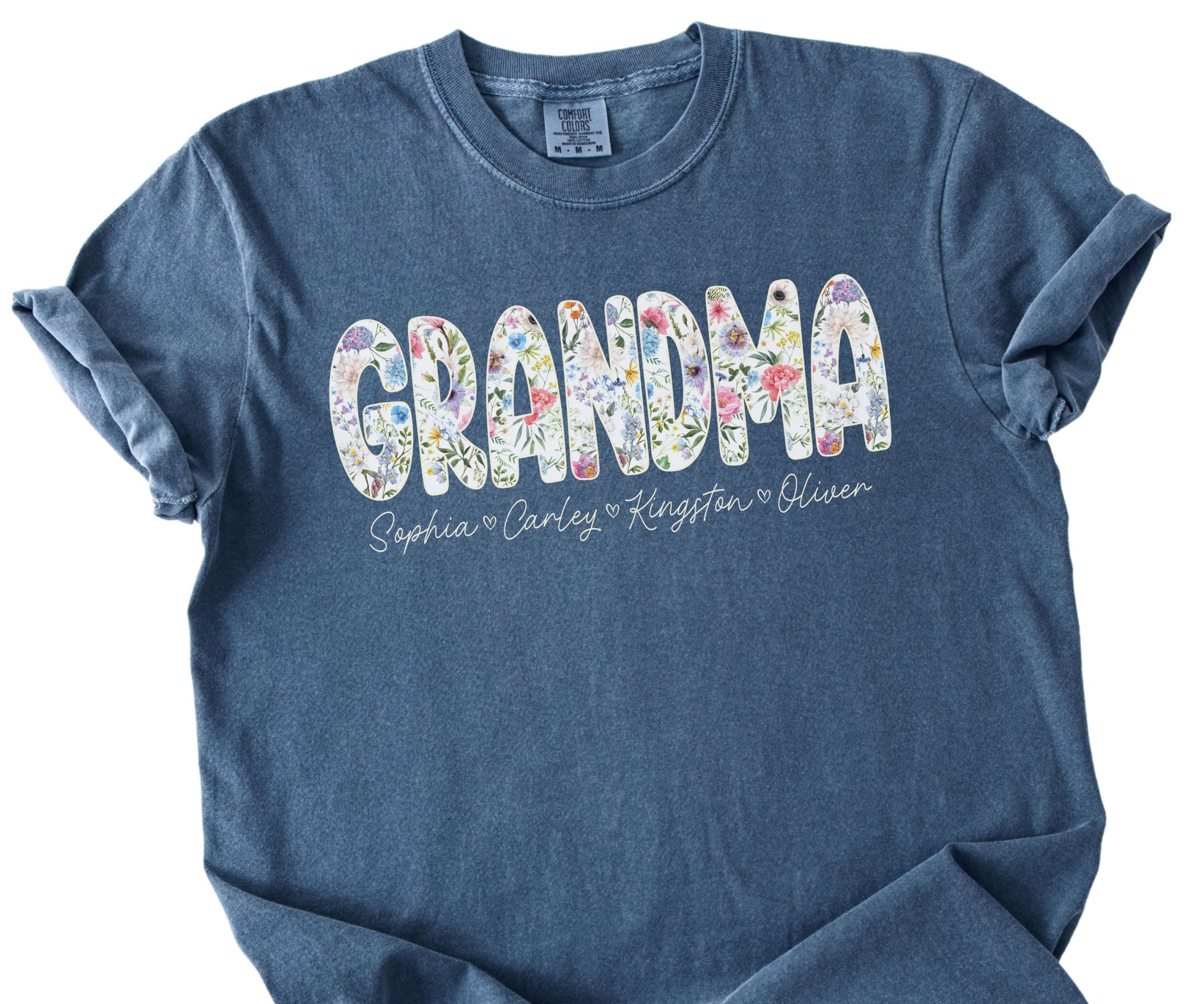 This custom grandma shirt is printed on premium Comfort Colors® t-shirts known for their exceptional softness and vintage-inspired look. The garment-dyed fabric provides a unique, slightly faded appearance that gets softer with each wash. We use professional-grade printing techniques to ensure the floral design and personalized names remain vibrant and durable through countless wears and washes.