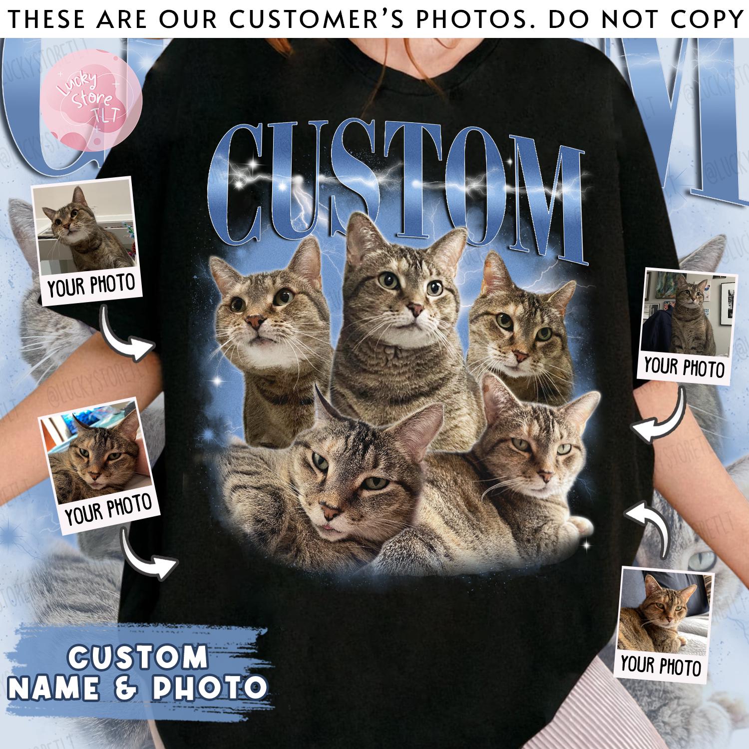 Celebrate your feline friend with this unique custom retro bootleg t-shirt! 🐱 Transform your favorite cat photo into a stylish vintage-inspired design that captures your pet’s personality. Perfect for cat moms, dads, and anyone who loves their furry companion, this personalized shirt lets you create a one-of-a-kind tribute to your special kitty. Whether it’s a memorial piece or a fun celebration of your living pet, this custom design turns memories into wearable art! 🎨👕