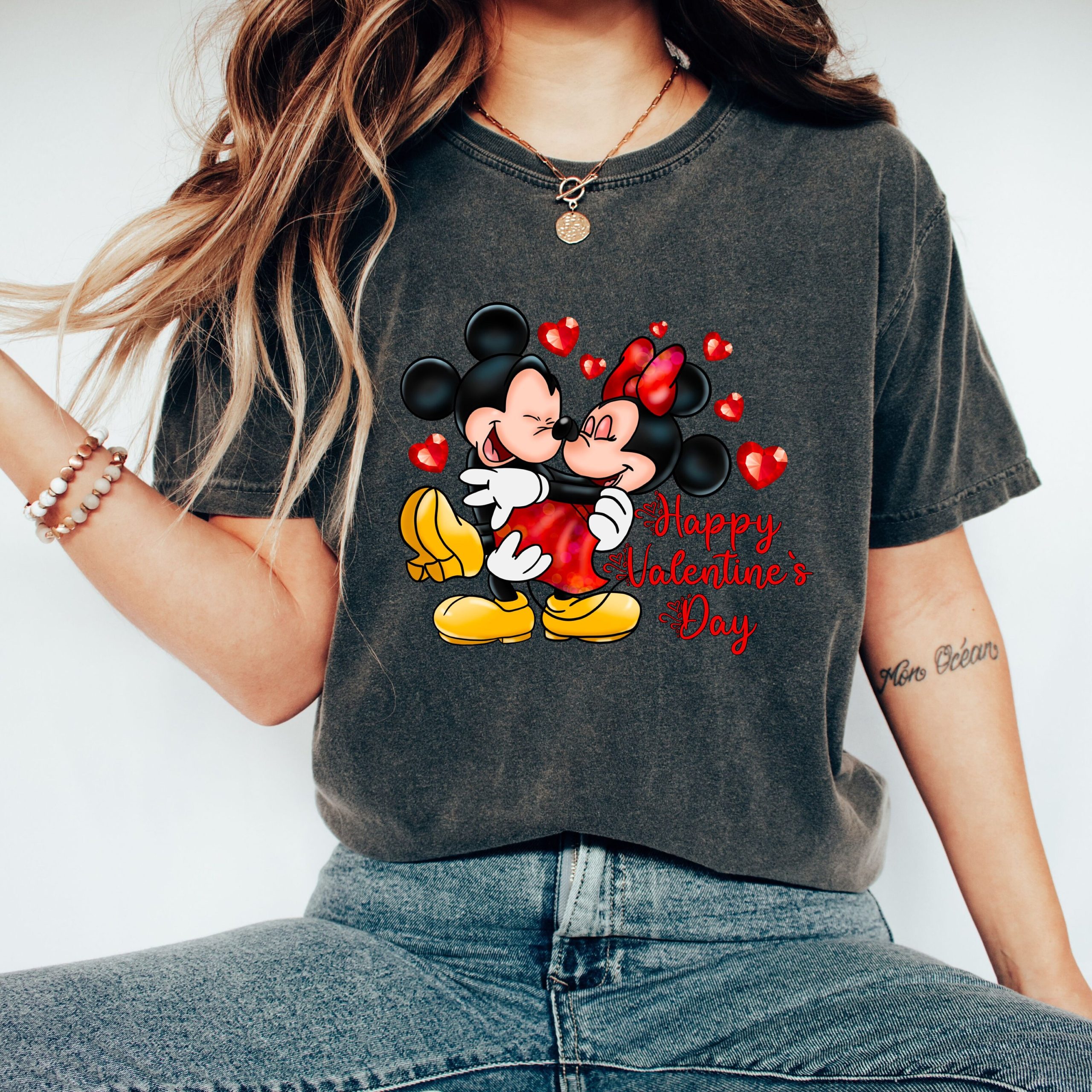 This high-quality t-shirt is made from premium Comfort Colors® fabric, known for its exceptional softness and vintage-inspired look. The design features Mickey and Minnie Mouse in a romantic Valentine’s Day theme, making it the perfect expression of Disney love. The print uses advanced techniques to ensure long-lasting vibrancy and durability.