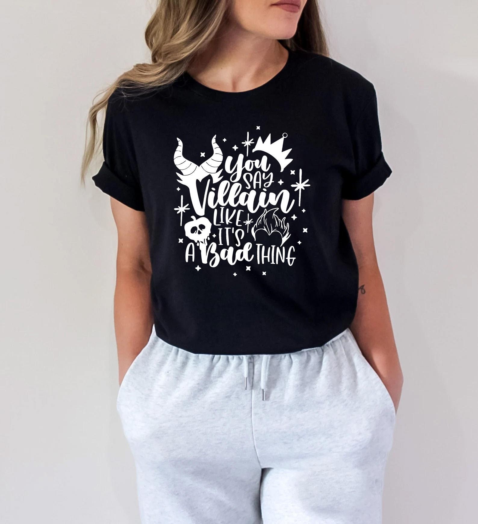 Unleash your inner mischief-maker with our exclusive Disney Villain Halloween T-shirt! This eye-catching design features the bold statement “You say villain like it’s a bad thing” – perfect for those who prefer the dark side. Whether you’re heading to a Halloween party, visiting Disney parks, or just showing off your villain pride, this tee is your ultimate statement piece. 🎃👻