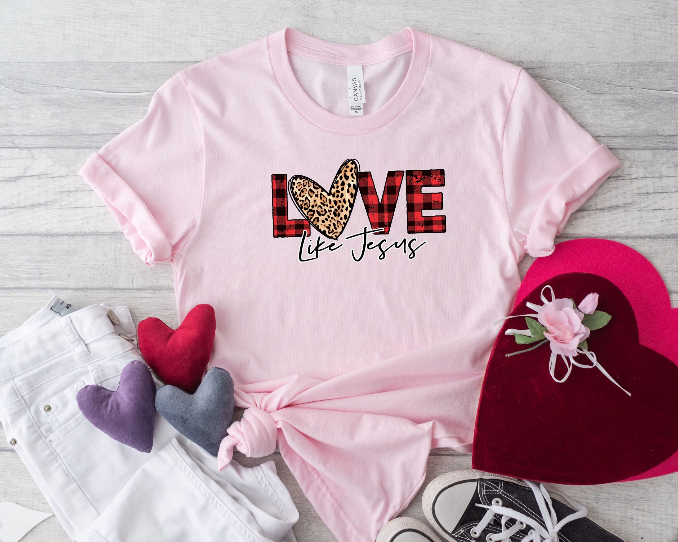 Express your faith with style this Valentine’s season! Our unique Love Like Jesus T-shirt combines meaningful messaging with eye-catching buffalo plaid leopard print design. This isn’t just another graphic tee—it’s a conversation starter that beautifully merges spiritual inspiration with contemporary fashion trends. Perfect for Christian women who want to share their faith while staying on-trend with the season’s hottest patterns. 🎨👕