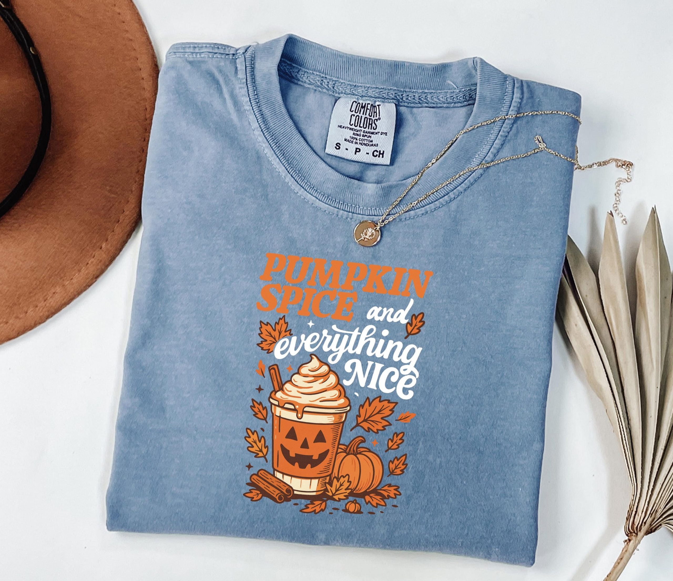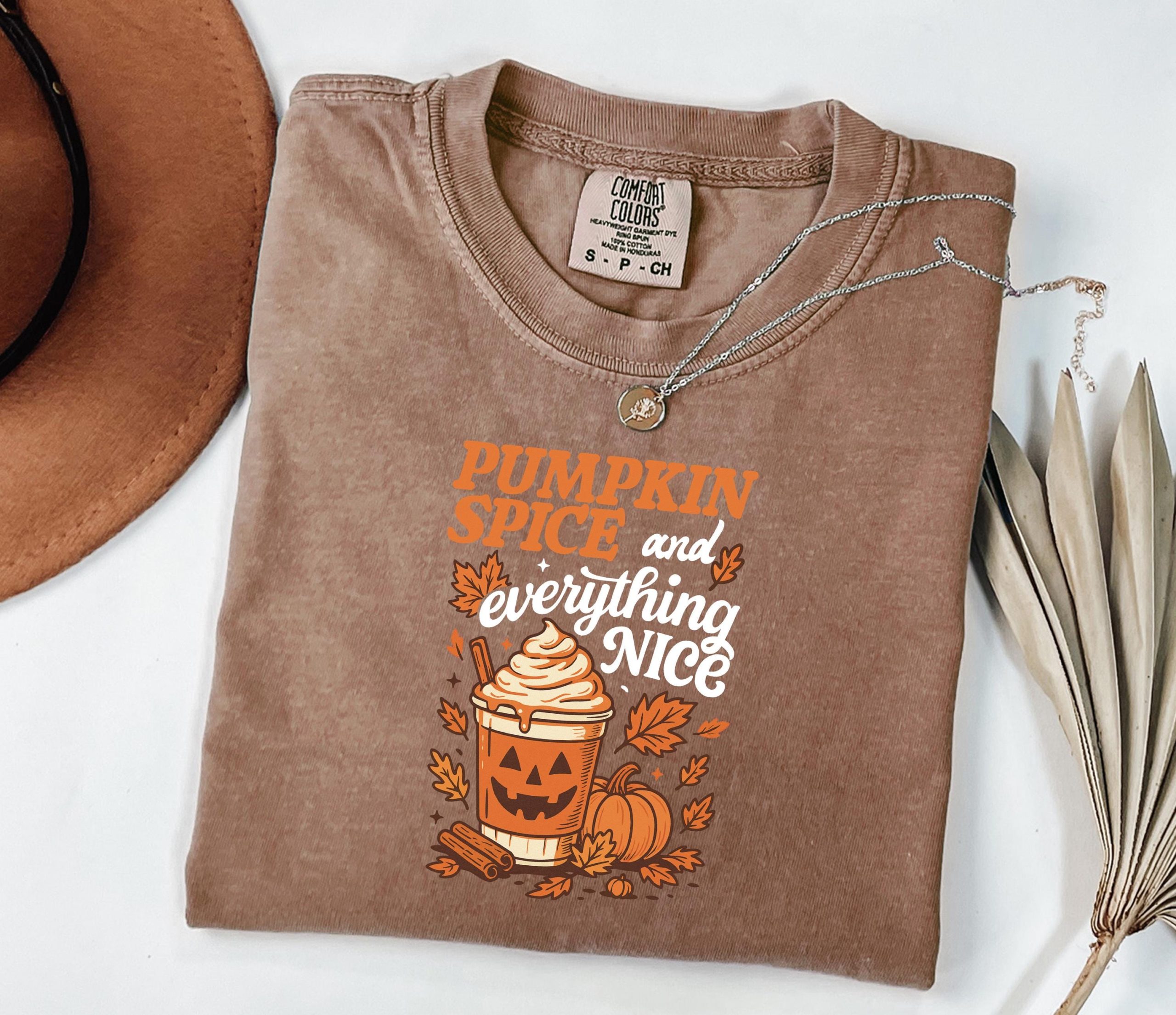 - Vintage-Inspired Graphic: Retro Halloween design featuring pumpkin spice elements with a nostalgic feel