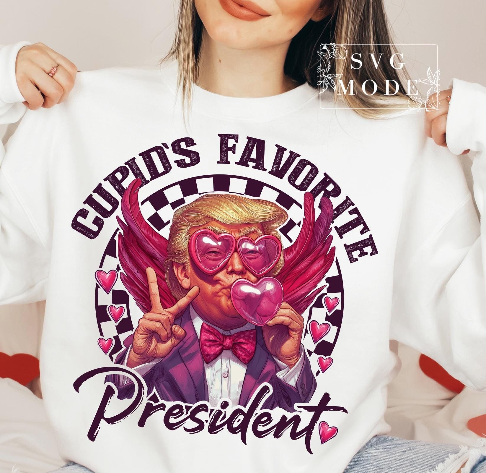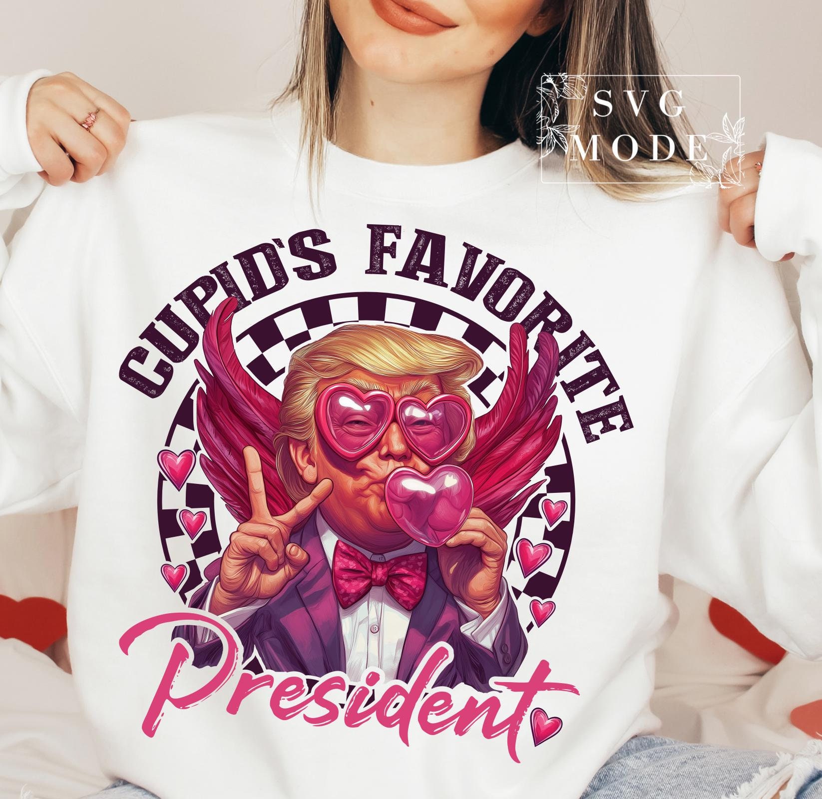 - Humorous Twist: “Cupid’s Favorite President” text adds playful political humor
