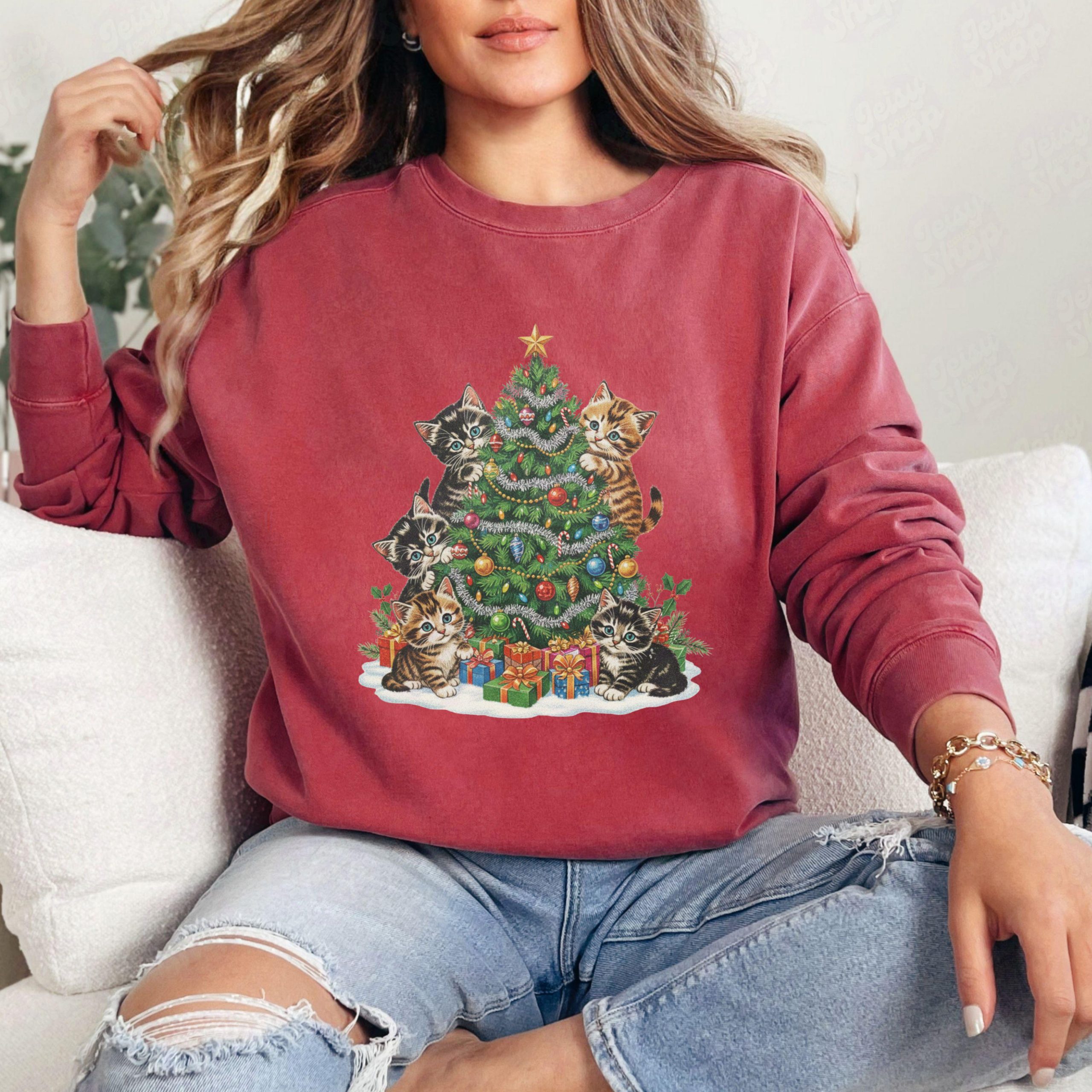 Spread holiday cheer with this nostalgic 90s retro holiday tee that combines feline fun with Christmas spirit! Perfect for anyone who loves cats, vintage fashion, and making merry memories. 🎄✨