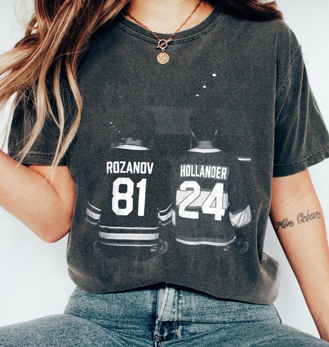 Be the first to review “Vintage Hockey Romance Rivalry T-Shirt – Rozanov 81 Hollander 24”